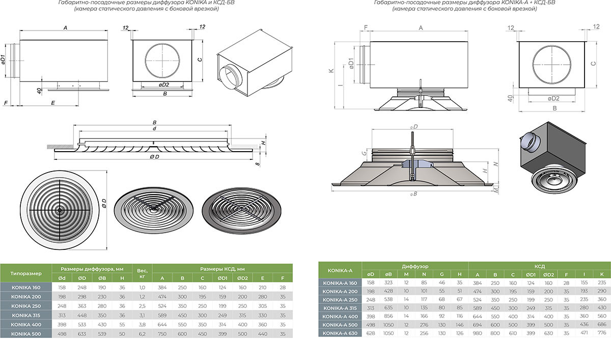 Камера статического давления (КСД/КСР) представляет собой важный компонент систем вентиляции, предназначенный для подключения веерных диффузоров KONIKA к круглым воздуховодам. Данное оборудование обеспечивает эффективное распределение воздушных потоков в системах кондиционирования и вентиляции.