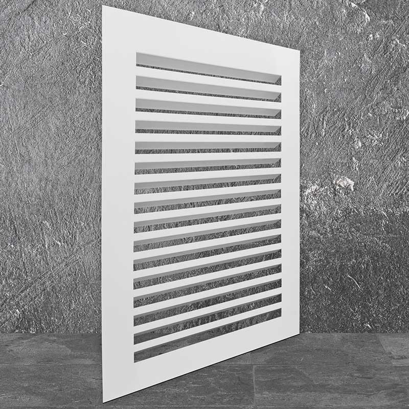 Решетка представляет собой оцинкованный лист с отогнутыми ламелями (30 мм) и рамкой толщиной 0,9 мм. Стандартный размер фланца - 35 мм (может быть изменен под требования заказчика).