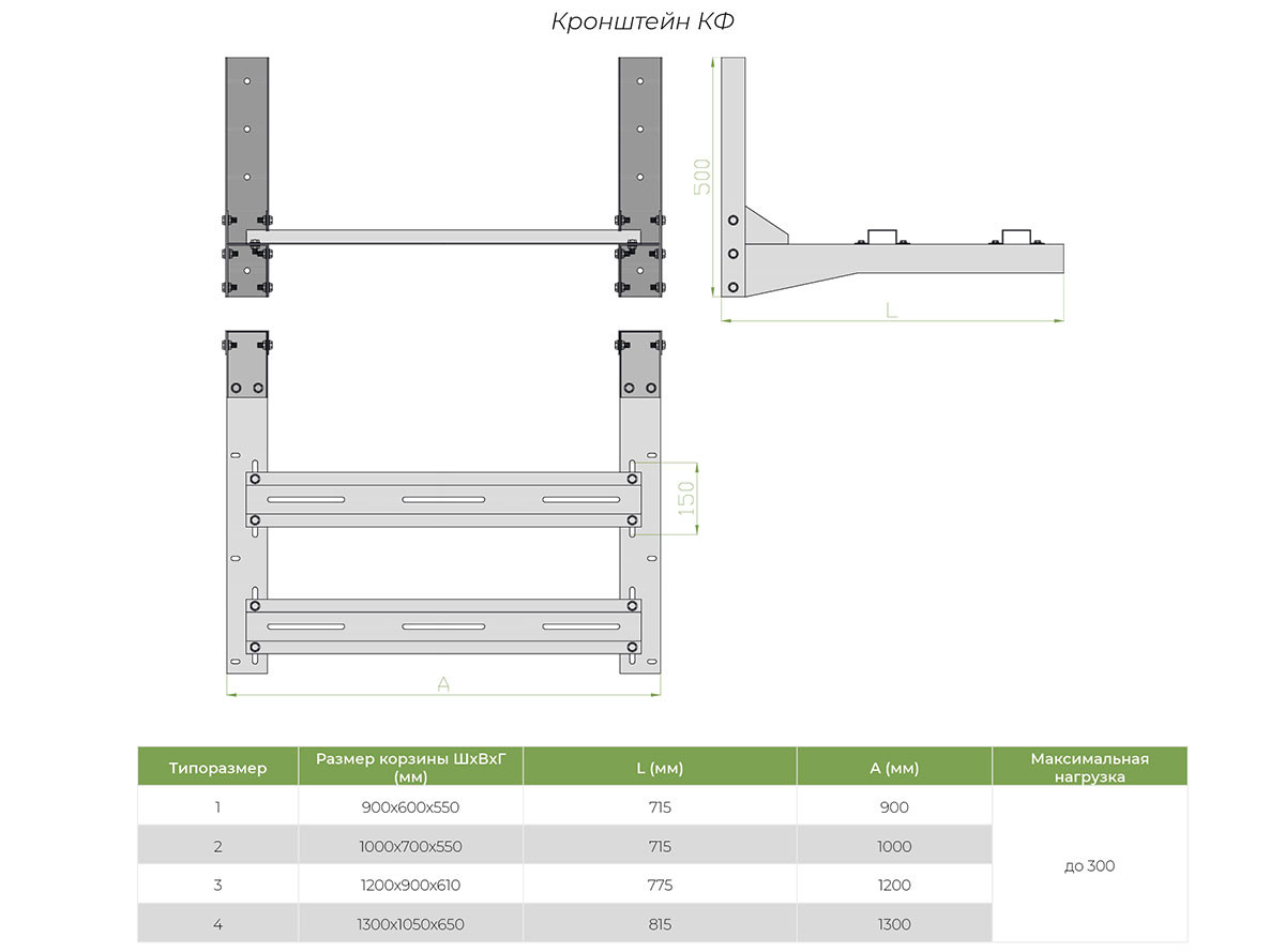 - Расчетная нагрузка до 300 кг по результатам испытаний