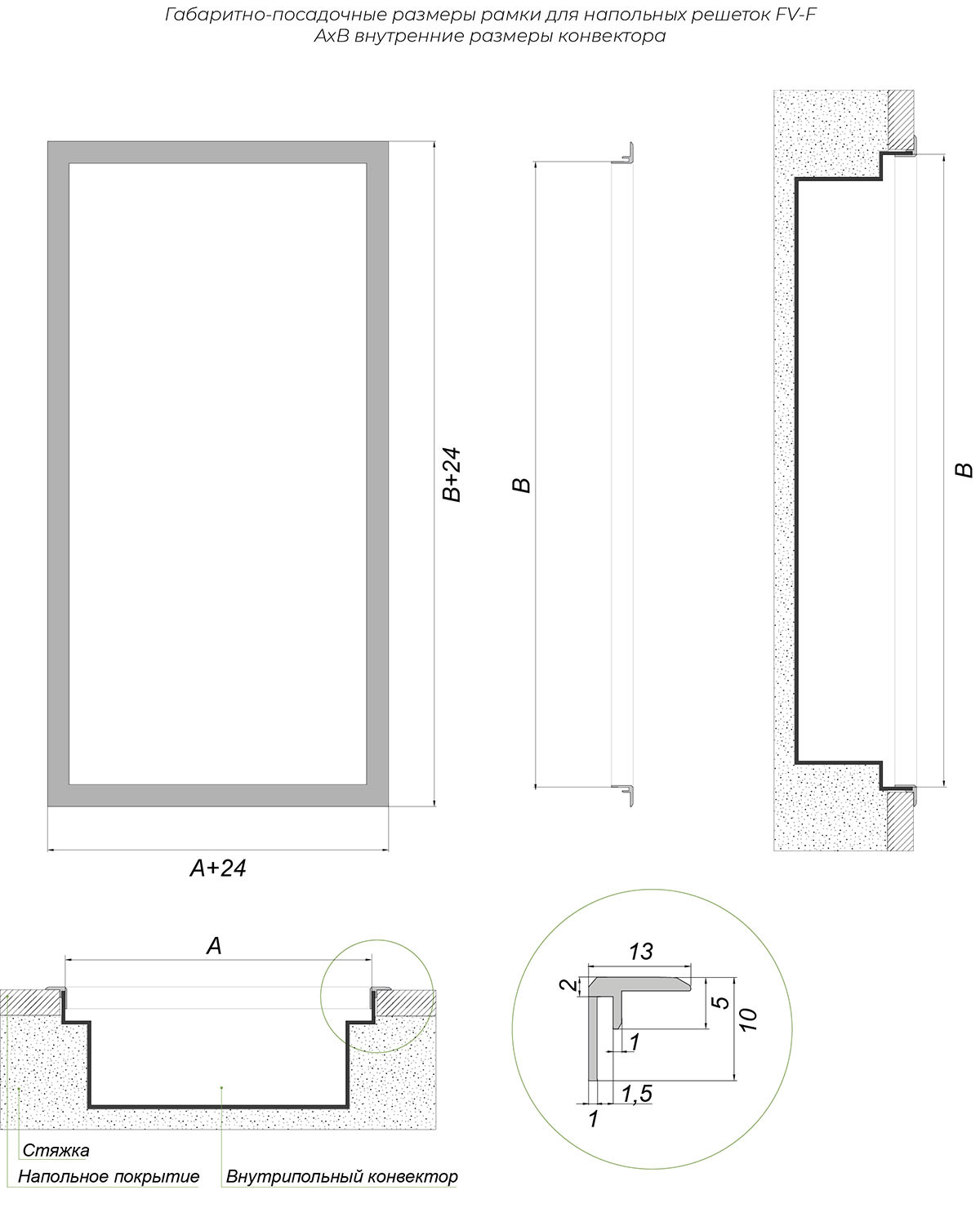 F-образная конструкция профиля позволяет монтировать конвектор в различные типы полов, обеспечивая надежное скрытие стыков между корпусом оборудования и напольным покрытием.
