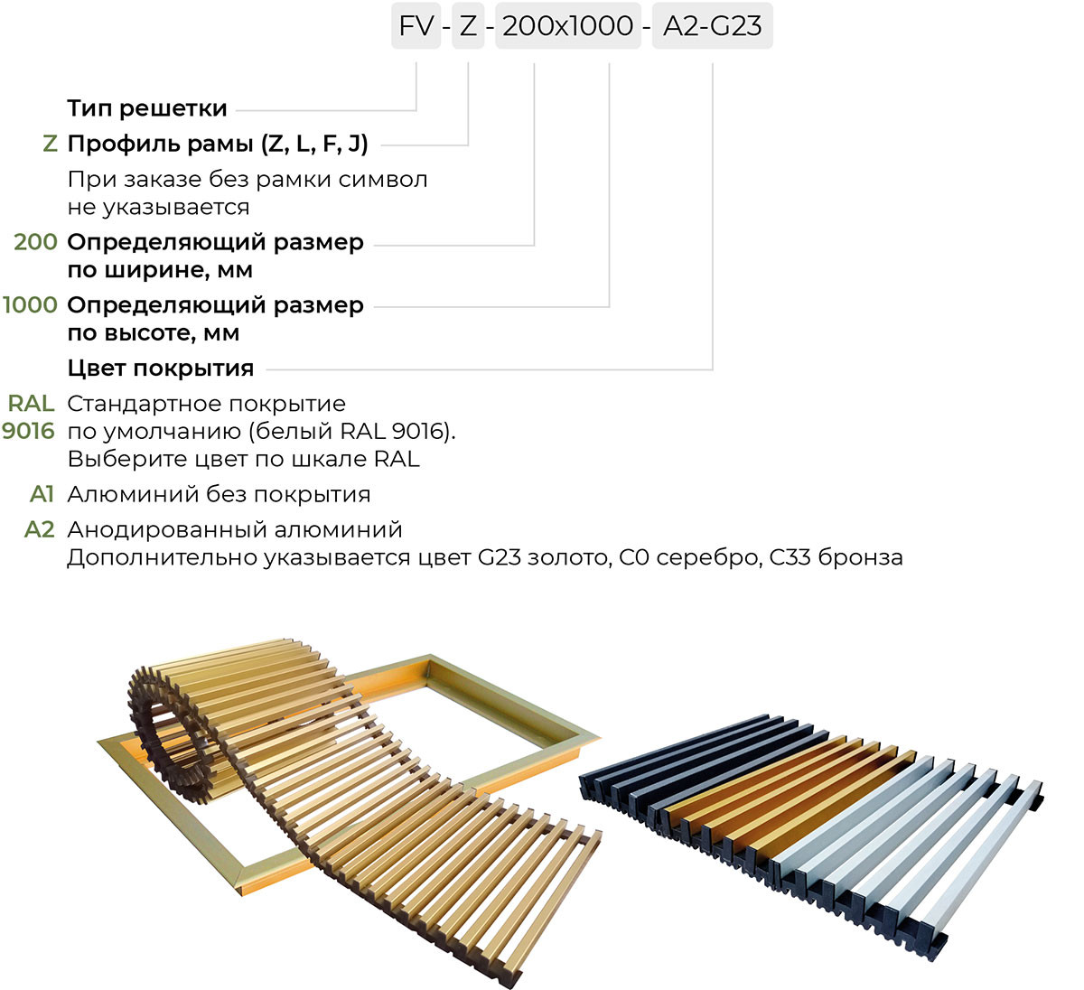 Решетки FV обладают следующими техническими характеристиками: