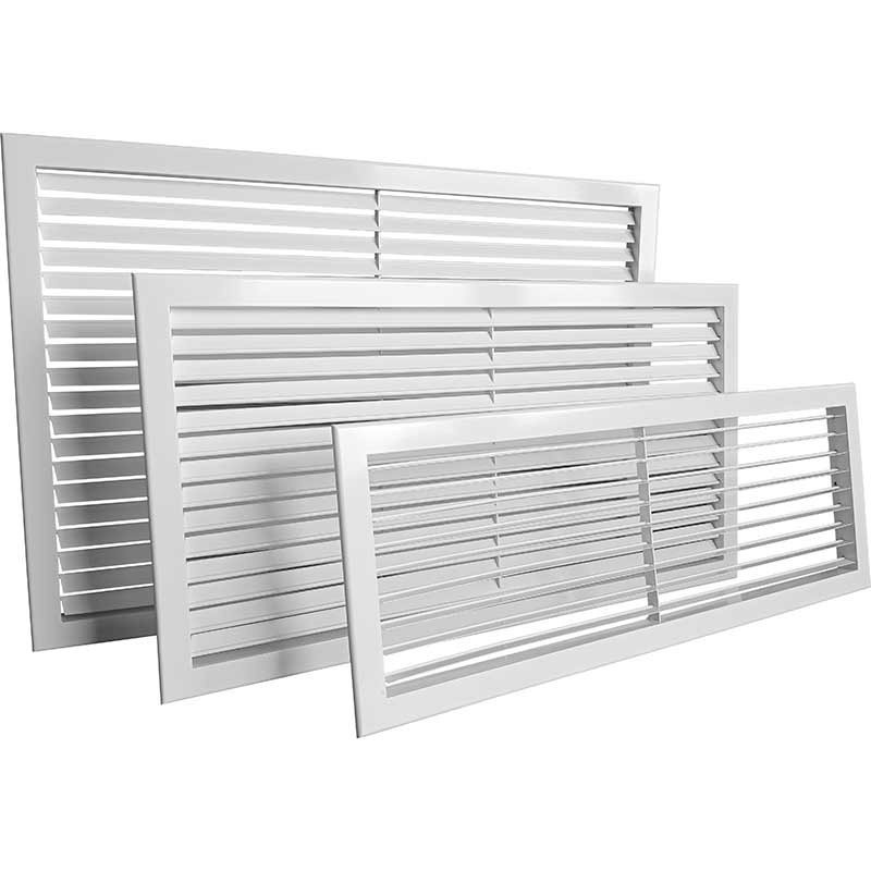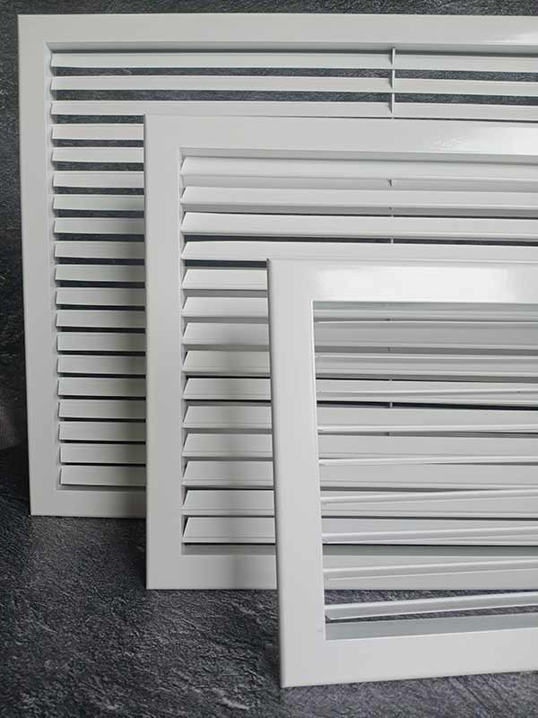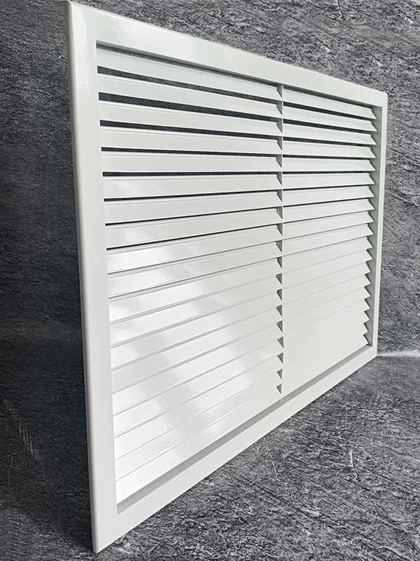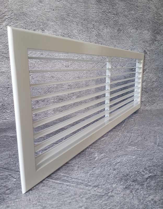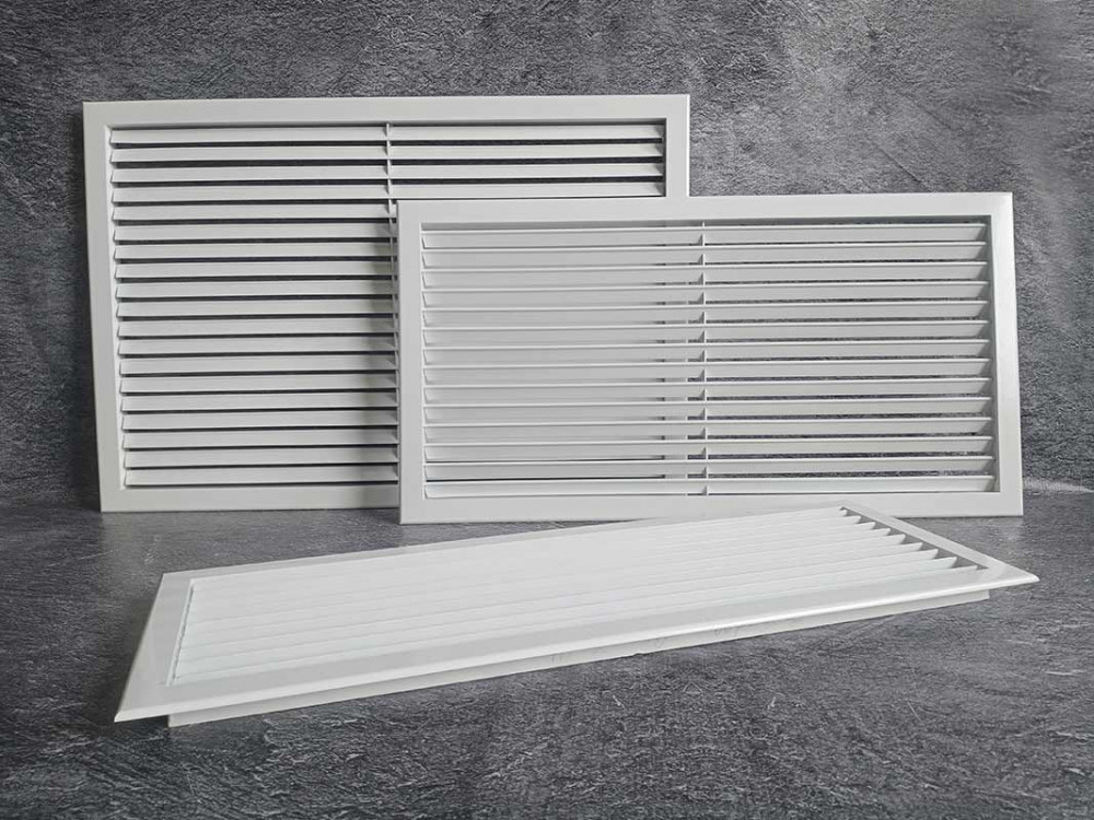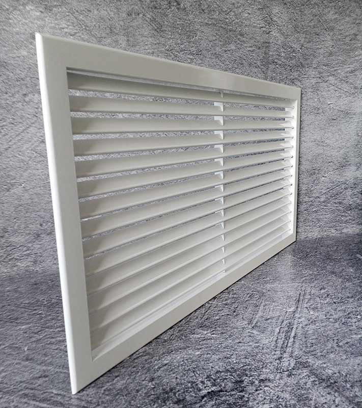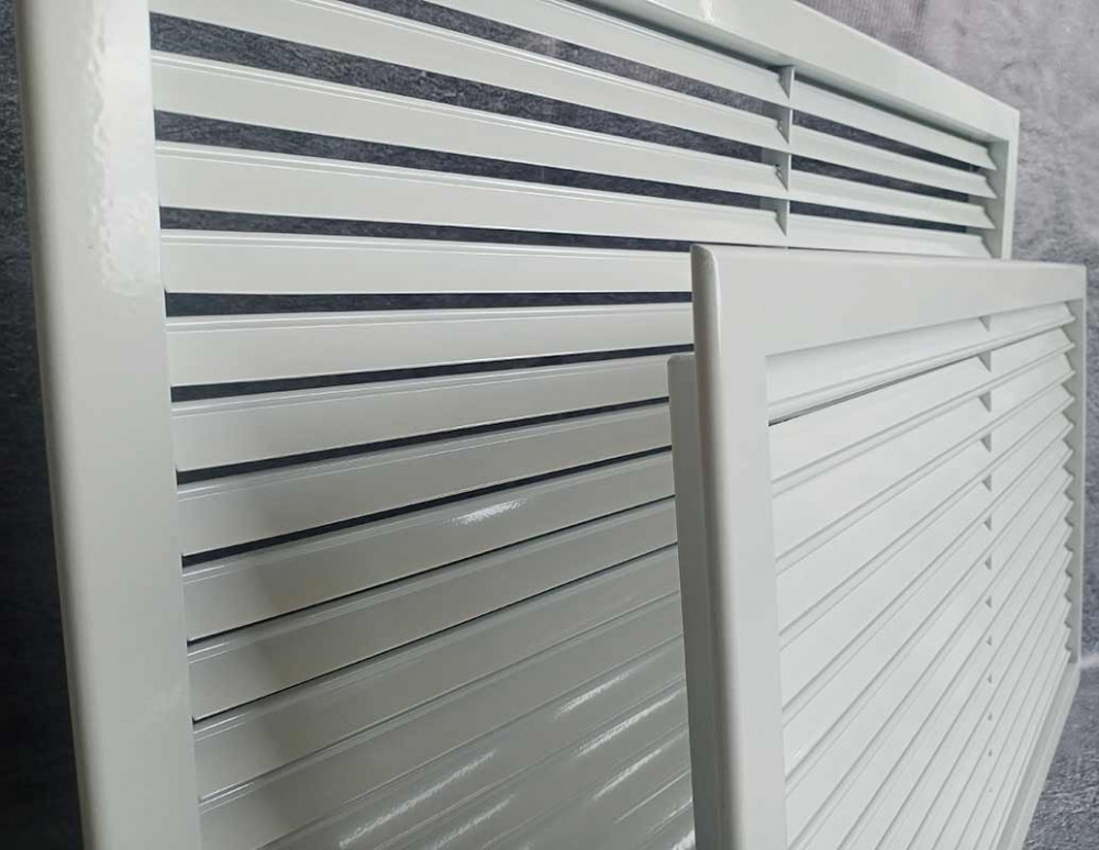 Решетка устанавливается в стены, воздуховоды или потолочные проемы. Благодаря жесткой фиксации жалюзи специальной пластиной с вырезами, конструкция сохраняет свою форму и эстетичный вид на протяжении всего срока эксплуатации.