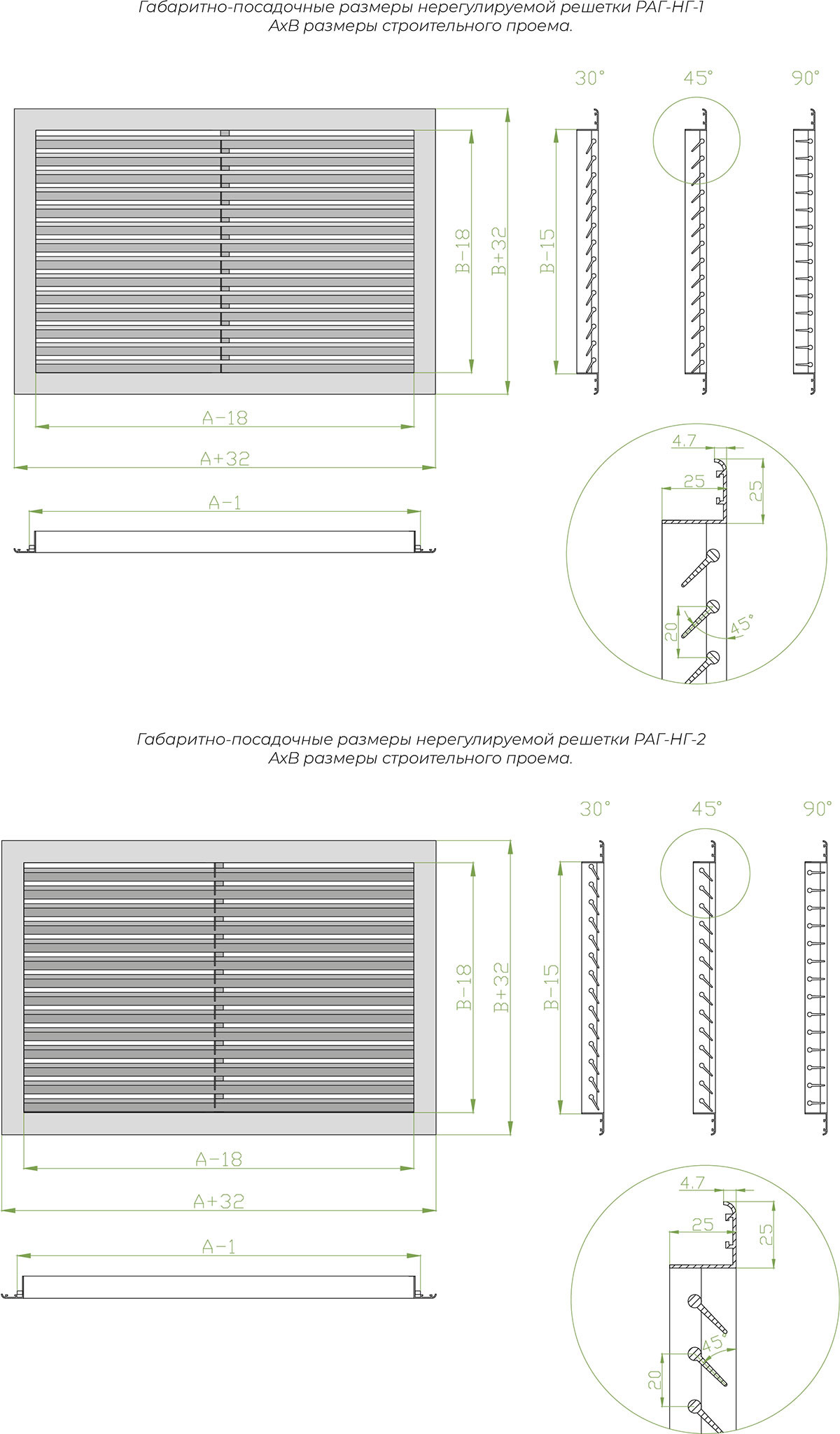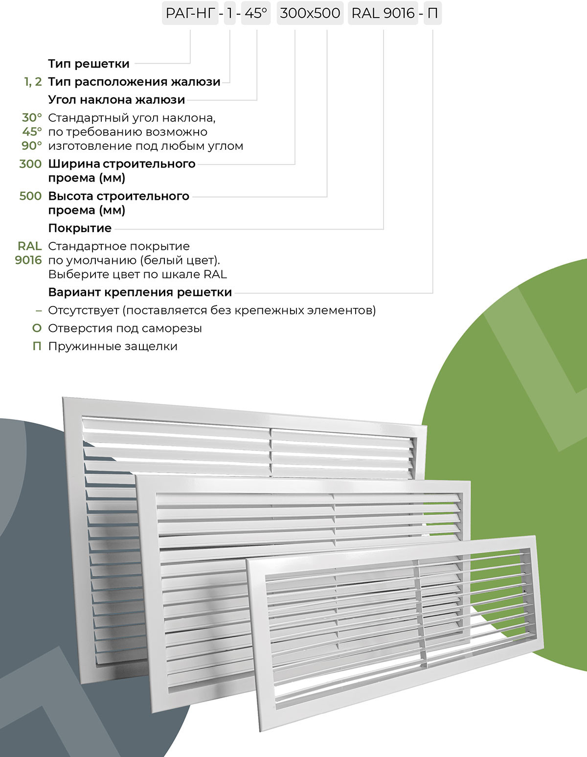 - Типы исполнения: РАГ-НГ-1 (жалюзи внутрь), РАГ-НГ-2 (жалюзи наружу)