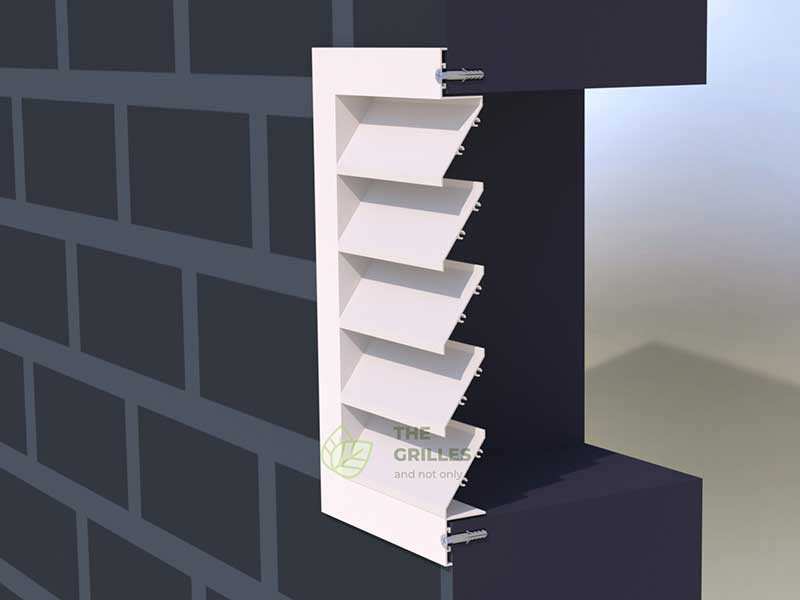 Решетка ВРН-К представляет собой усиленную наружную конструкцию, разработанную специально для больших вентиляционных проемов. Отличительной чертой модели являются S-образные полые жалюзи с капельником, расположенные под углом 35˚. Такая форма обеспечивает: