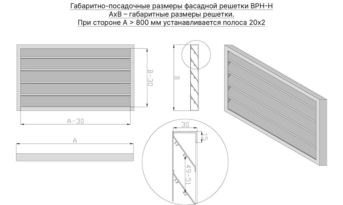 Накладная решетка ВРН-Н - это оптимальное решение для организации вентиляции в фасадных и витражных системах. Ее конструкция специально разработана для монтажа вместо стеклопакетов, обеспечивая при этом эффективный воздухообмен и защиту от осадков.