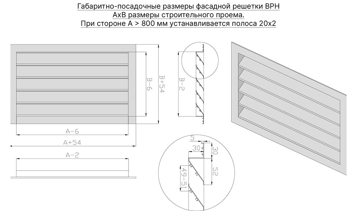 Наружная вентиляционная решетка ВРН представляет собой оптимальное решение для организации приточно-вытяжной вентиляции зданий. Ее конструкция обеспечивает эффективный воздухообмен при одновременной защите от атмосферных осадков и посторонних предметов.
