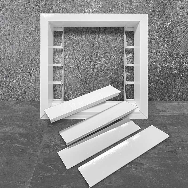 Модульная конструкция решетки обеспечивает простоту монтажа и обслуживания, позволяя оперативно проводить очистку внутренних поверхностей или замену отдельных элементов без демонтажа всей конструкции. Это особенно важно при эксплуатации вентиляционных систем в условиях повышенной запыленности или при необходимости регулярного технического обслуживания.