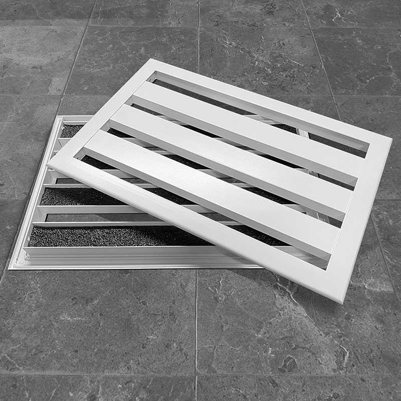 Алюминиевая конструкция решетки обеспечивает устойчивость к коррозии, перепадам температур и механическим воздействиям. Порошковое покрытие не только придает изделию эстетичный вид, но и дополнительно защищает его от внешних факторов, продлевая срок службы.