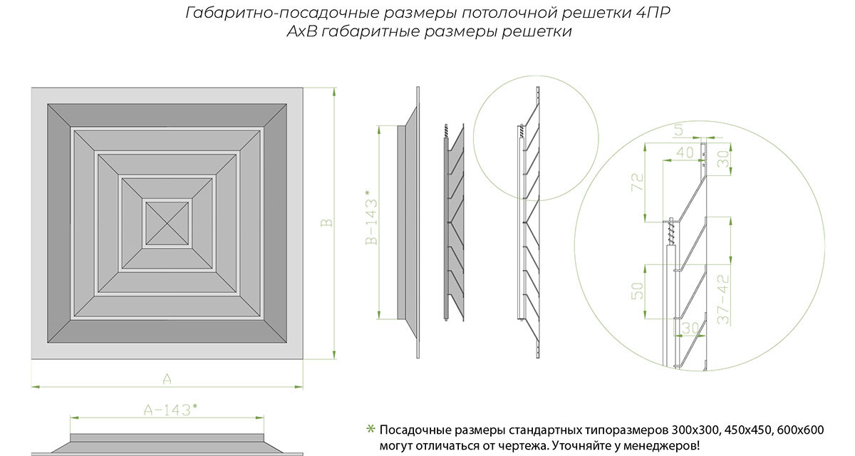 Потолочный диффузор 4ПР 600х600 мм представляет собой качественный аналог решеток Арктос, предназначенный для эффективного распределения воздушных потоков в системах вентиляции и кондиционирования. Идеально подходит для монтажа в подвесные потолки типа Армстронг, обеспечивая комфортный микроклимат в помещении.