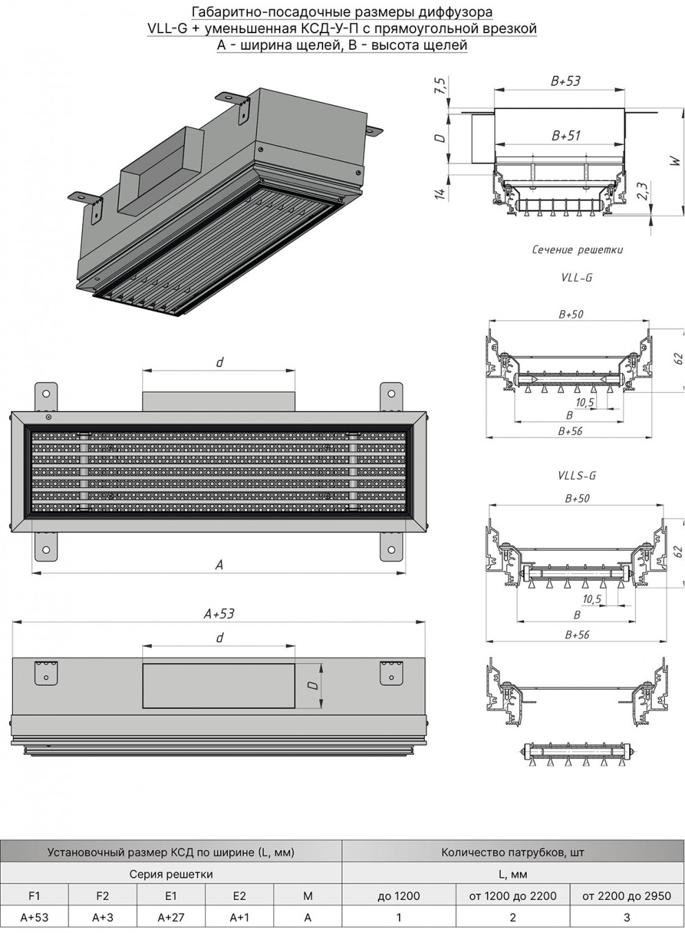 Щелевой диффузор PL50M аналог Lindab LD14