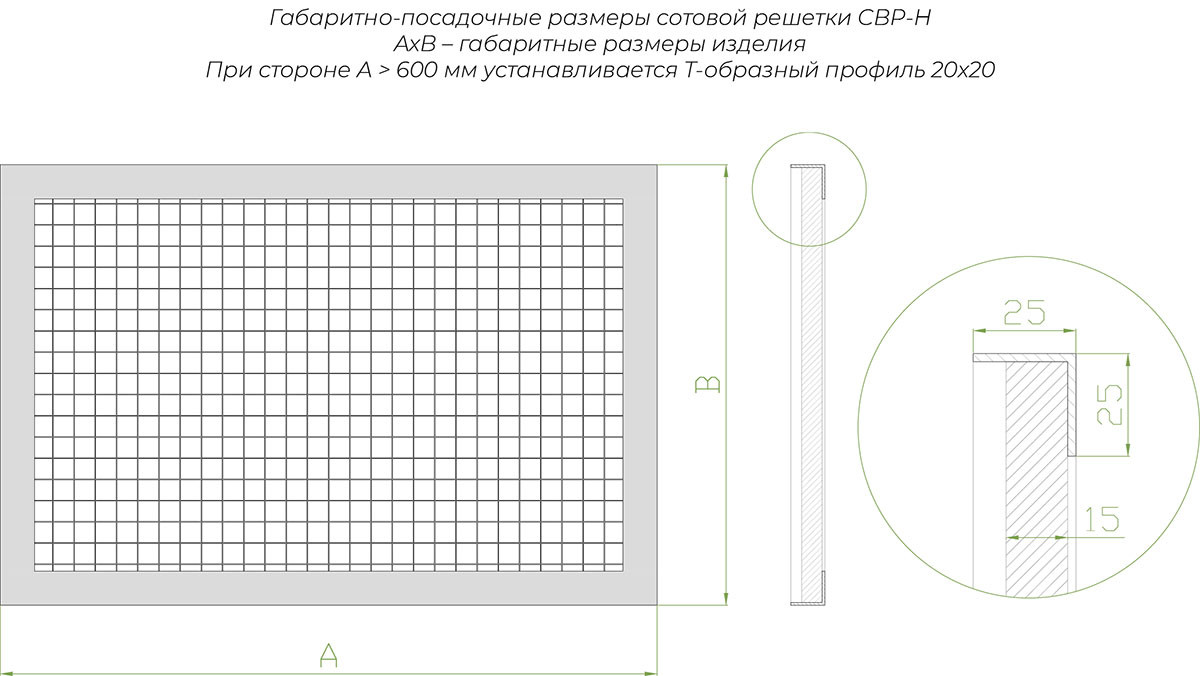 Ячеистая структура решетки СВР-Н обеспечивает оптимальное соотношение между площадью свободного сечения и прочностью конструкции, что делает ее универсальным решением для современных систем вентиляции.