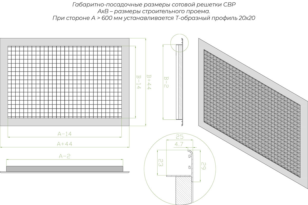 Сотовая решетка СВР представляет собой специализированное решение для систем приточно-вытяжной вентиляции и кондиционирования. Конструкция разработана для эффективного воздухообмена в помещениях различного назначения.