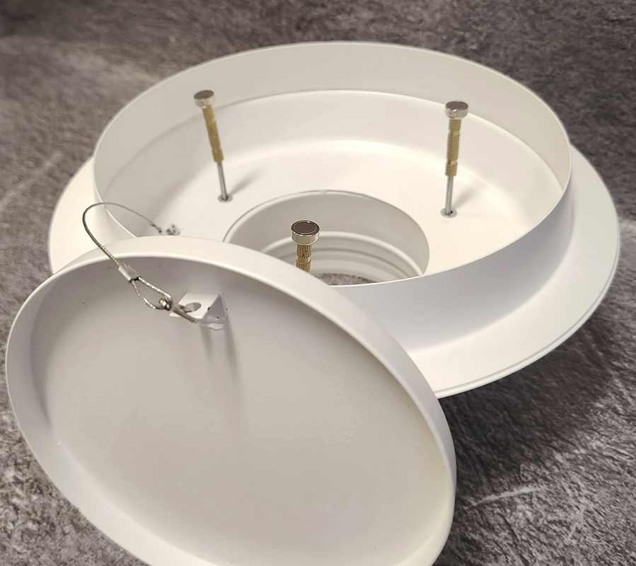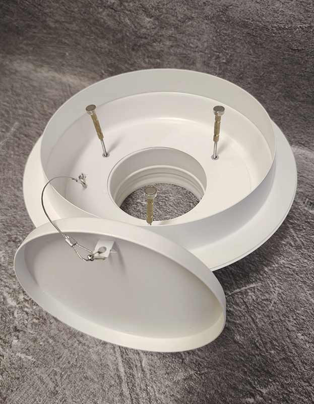 - Качество материалов: изготовлен из оцинкованной стали толщиной 0,9 мм с порошковым покрытием RAL 9016M (белый матовый), идеально сочетающимся с потолочными конструкциями.