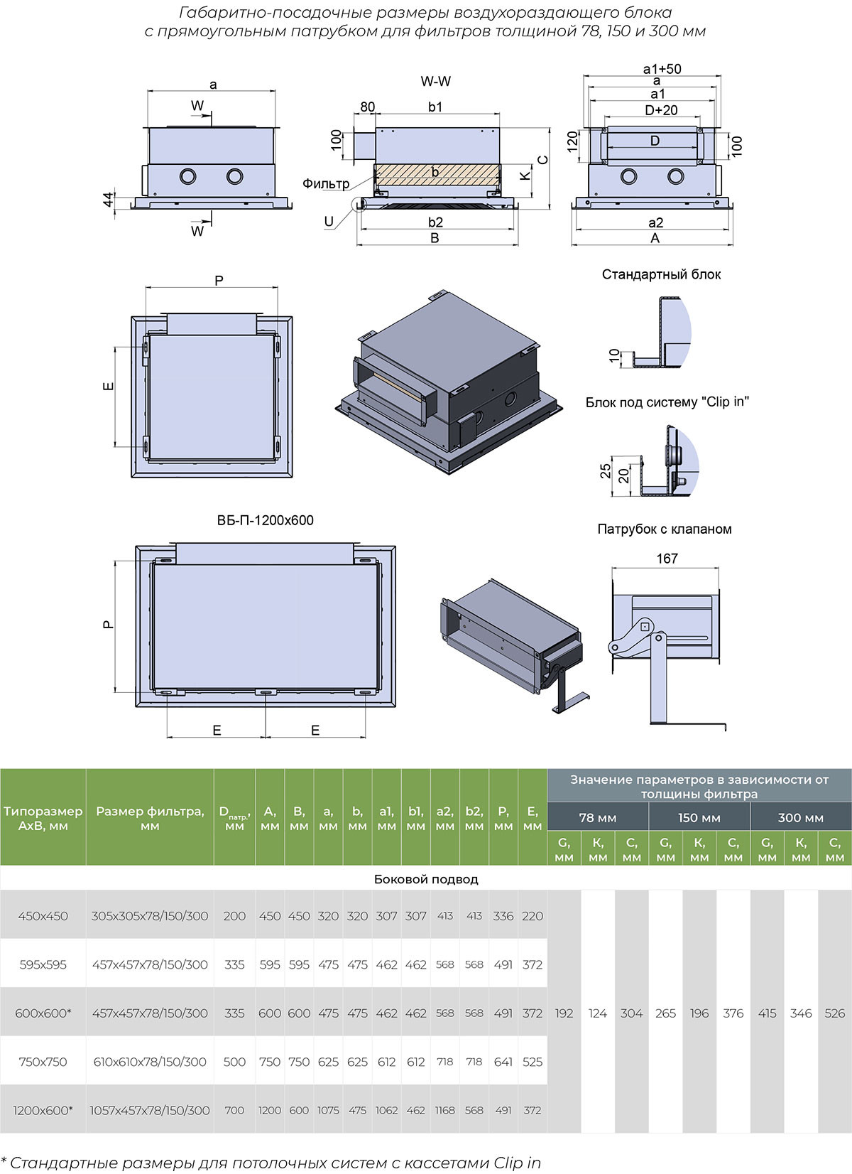 Для правильного подбора и заказа воздухораспределительного модуля ВБ-П необходимо точно знать габаритные и посадочные размеры блока, а также требуемый тип воздухораспределения.