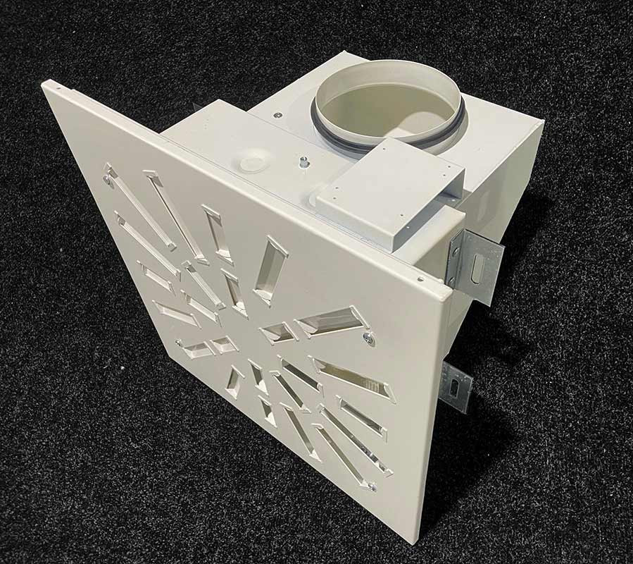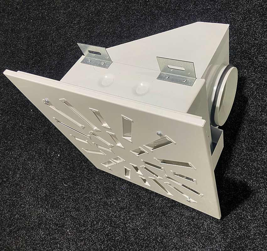 - Прочный стальной корпус с круглым патрубком для бокового подвода воздуха