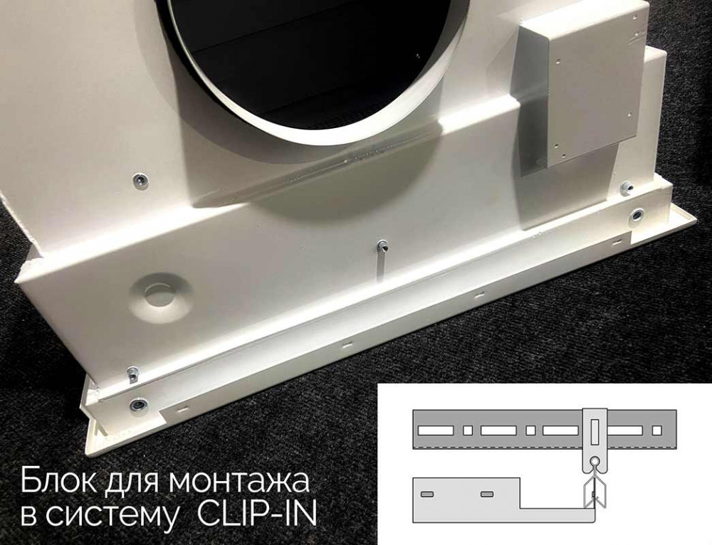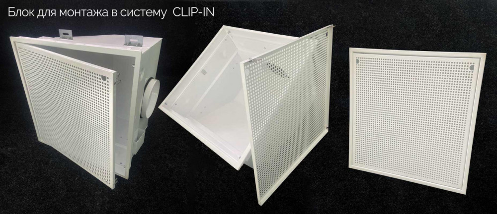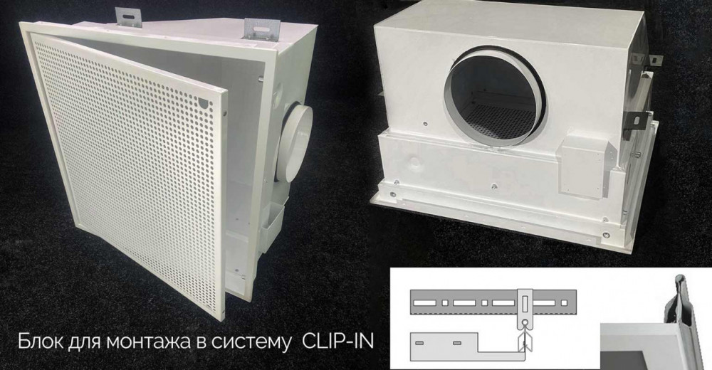 Блоки ВБ монтируются как в подшивные потолки, так и в открытое пространство. Крепление осуществляется с помощью: