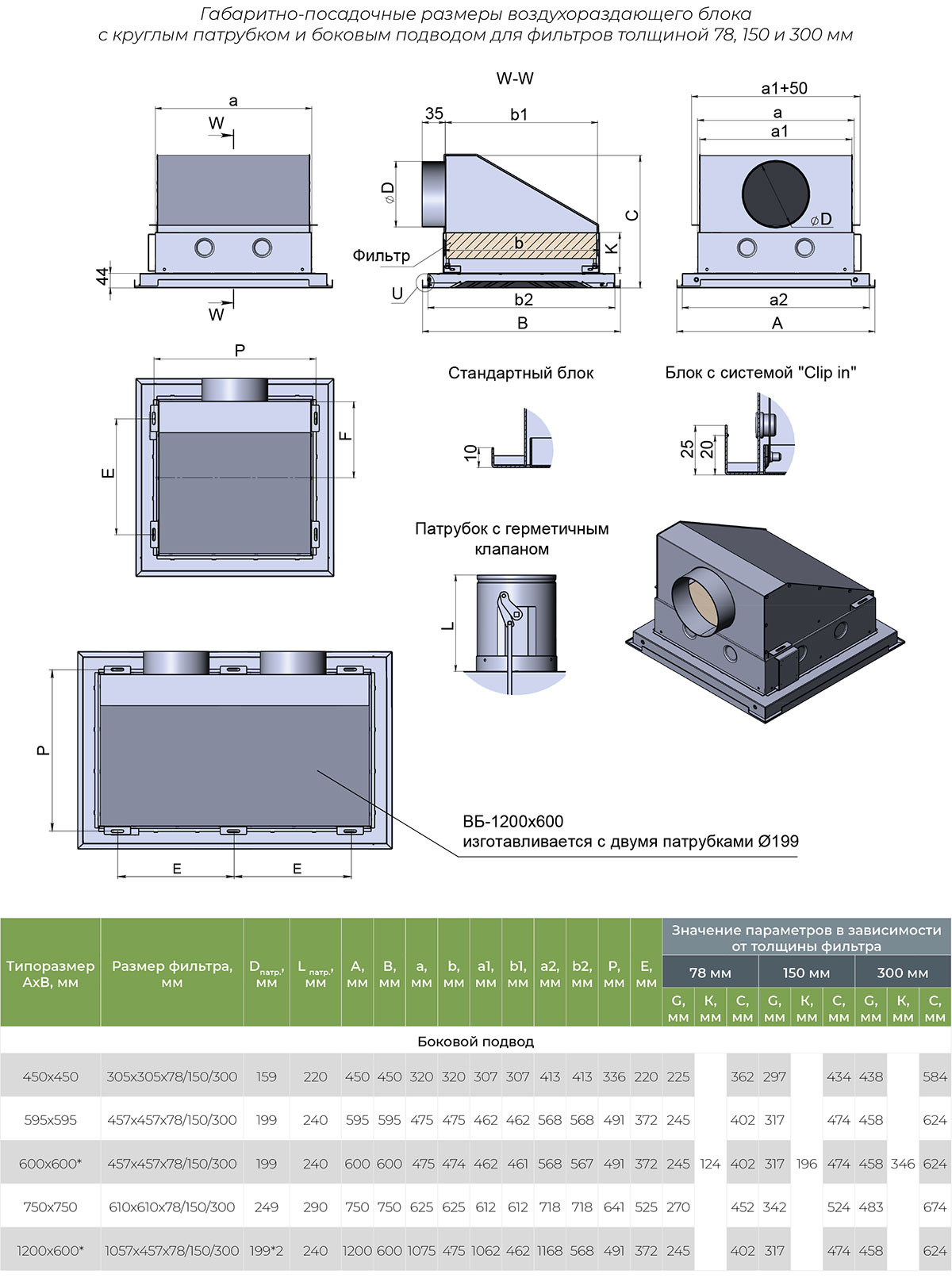 Воздухораздающие блоки ВБ производятся в следующих типоразмерах: