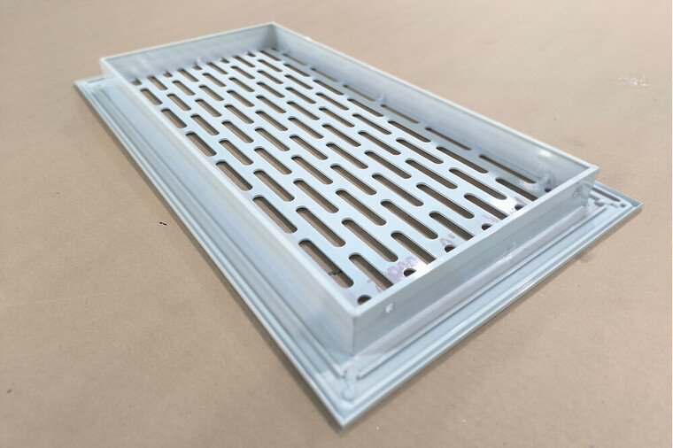 Решетка изготавливается из алюминиевого сплава АД31, который характеризуется высокой прочностью и долговечностью, обеспечивая практически неограниченный срок службы изделия. Максимальные размеры решетки могут достигать 2 метров по одной из сторон. Для обеспечения большей длины проемов рекомендуется изготовление решетки секциями.