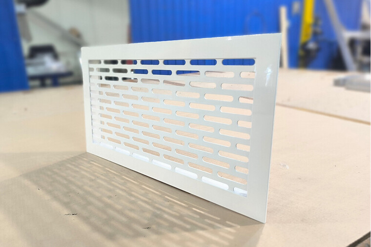 Решетка обладает современным дизайном и оснащена декоративной перфорацией, которая может быть выполнена в различных вариантах по индивидуальному запросу. По желанию заказчика возможно оснащение решетки дополнительной защитной сеткой для повышения эффективности фильтрации воздуха. Также предусмотрена возможность нанесения порошковой краски в любой цвет по стандарту RAL для соответствия интерьерным решениям.