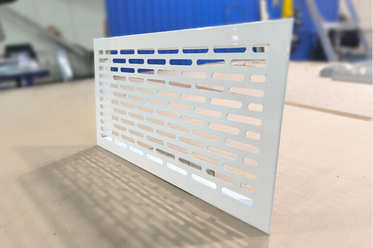 Решетка изготавливается из высококачественного стального листа, который подвергается штамповке для формирования перфорации. Поверхность изделия покрывается порошковой краской, что обеспечивает долговечность, устойчивость к коррозии и возможность выбора цвета по палитре RAL для интеграции в любой интерьер или экстерьер.
