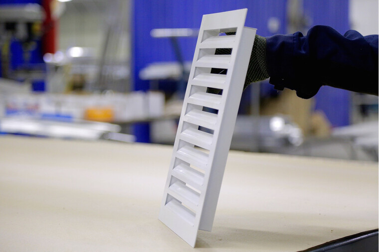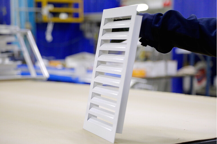 Изделие изготовлено из оцинкованной стали толщиной от 0,5 до 1,0 мм методом штамповки. Специальная форма профиля и угол наклона жалюзи минимизируют аэродинамическое сопротивление, способствуя эффективной работе вентиляционной системы. По запросу заказчика рамка решетки может быть подготовлена с отверстиями для монтажа.