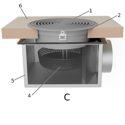 Диффузор позволяет организовать поступление приточного воздуха в помещение из систем механической вентиляции и кондиционирования через пол. Для адаптации к специфическим условиям эксплуатации предусмотрены три варианта маршрутизации воздушного потока.