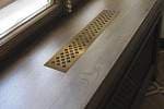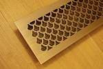 Декоративная встраиваемая решетка, выполненная из латунных сплавов, представляет собой элемент интерьера, изготовленный методом лазерной резки из листового металла толщиной от 2 мм. Данное изделие предназначено для эстетического дополнения вентиляционных отверстий и других конструктивных элементов.