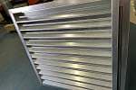 Решетка изготовлена из оцинкованной стали толщиной 0.9 мм. Конструкция полностью выполнена из листового металла, что обеспечивает высокую прочность и долговечность изделия. Отсутствие точечной сварки в узлах соединения является дополнительным фактором, повышающим надежность конструкции.