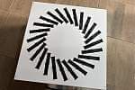 Диффузор состоит из лицевой панели и статической камеры. Лицевая панель выполнена из оцинкованной листовой стали с порошковым покрытием. Ламели имеют поворотную конструкцию, позволяющую регулировать направление воздушного потока. Возможна горизонтальная подача воздуха в одном, двух или всех четырех направлениях. Вертикальная подача воздуха предусмотрена только для систем обогрева. Допустимая разница температур приточного воздуха и воздуха в помещении составляет от –12 до +10 K.