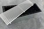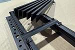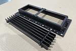 Стальные усиливающие кронштейны, устанавливаемые с задней стороны решетки, дополнительно укрепляют конструкцию. По умолчанию рама поставляется без покрытия, что минимизирует риск появления царапин при монтажных работах. Секция с ламелями может быть окрашена в любой цвет по шкале RAL или иметь анодированное покрытие, придающее изделию долговечность и индустриальный вид.