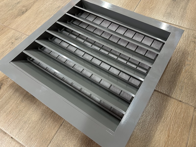Наружная жалюзийная решетка предназначена для защиты строительных проемов от атмосферных осадков и несанкционированного доступа, обеспечивая при этом вентиляцию. Конструкция решетки выполнена из алюминиевого профиля с использованием сварного и заклёпочного методов сборки. Жалюзи имеют специальный угол наклона, минимизирующий проникновение влаги внутрь вентиляционной шахты или помещения.