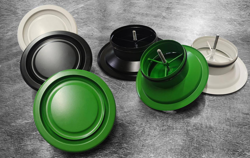 Вентиляционные диффузоры, предназначенные для потолка, создаются из высококачественного металла и защищают их от коррозии и повреждений, используя специальные краски. Для окраски используются различные оттенки из международного каталога RAL, предоставляя покупателям большой выбор.