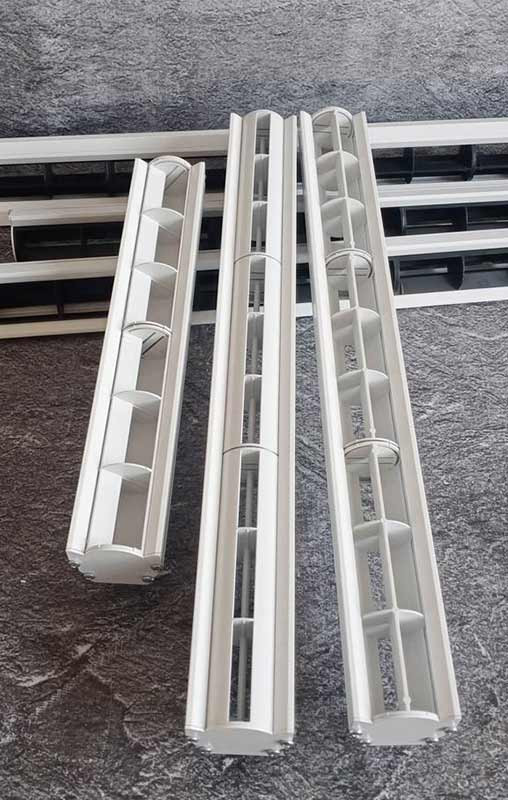 Щелевые решетки и диффузоры имеют лаконичные линии и позволяют осуществлять сборку модульной конструкции по всему периметру помещений. Также дополнительно комплектуются элементами для регулировки потока возуха.