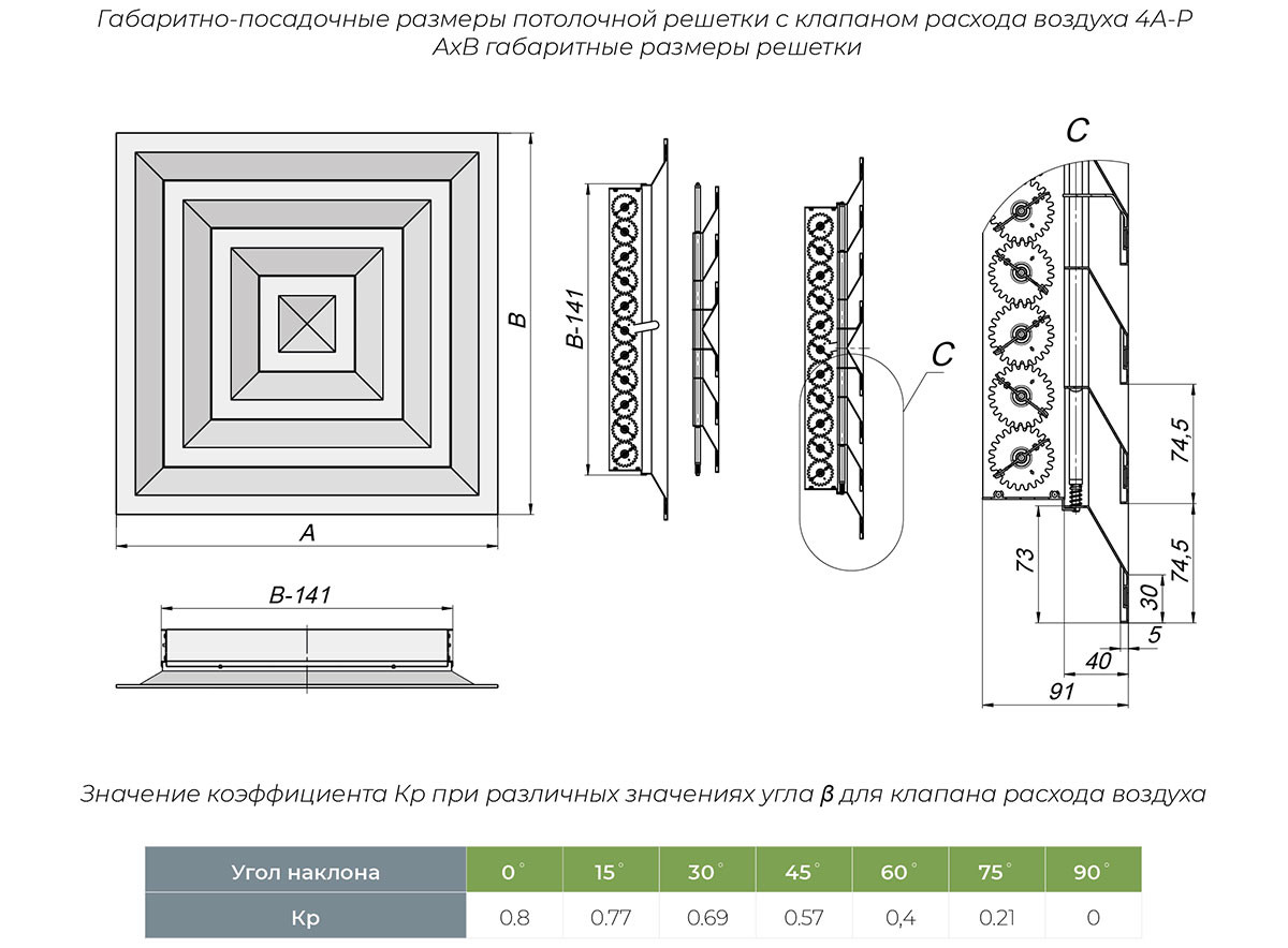 Решетка потолочная 4А-Р с регулируемым клапаном расхода воздуха - это профессиональное решение для систем вентиляции, сочетающее точную регулировку воздушного потока с эстетичным внешним видом и простотой монтажа.