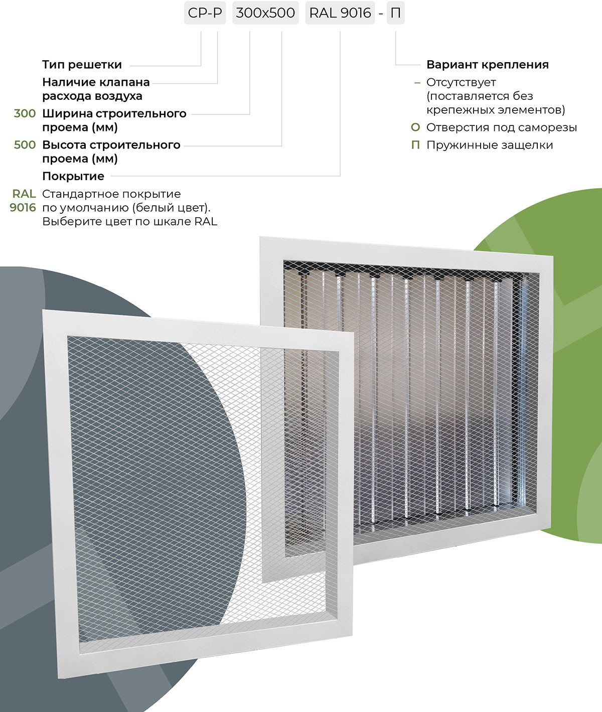 Решетки СР предлагают два варианта установки в зависимости от комплектации и условий эксплуатации:
