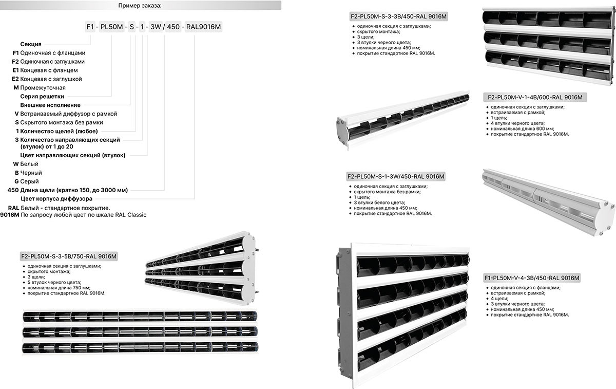 Щелевой диффузор PL50M – аналог Lindab LD14 для систем вентиляции