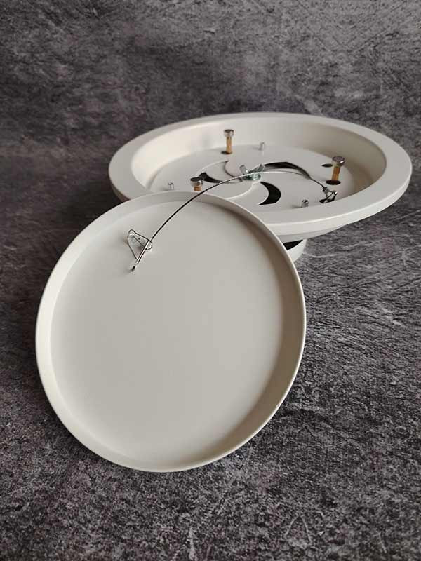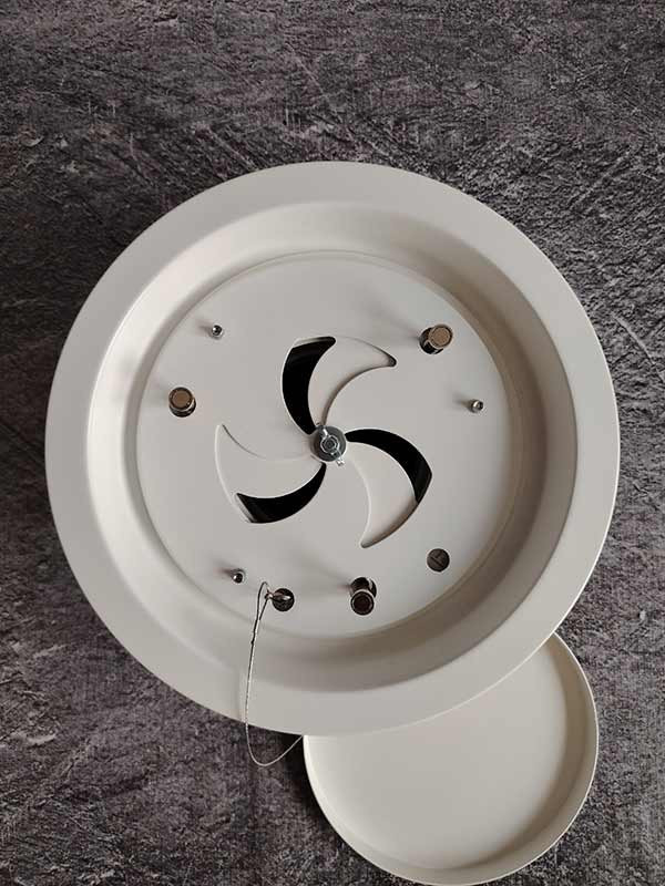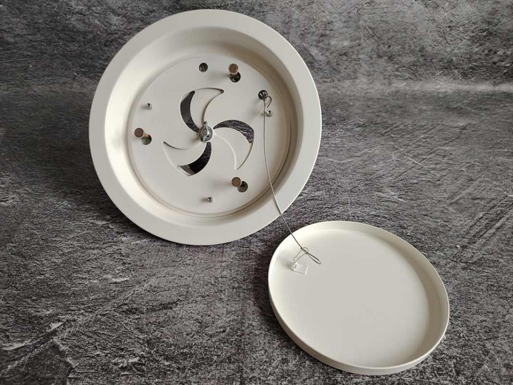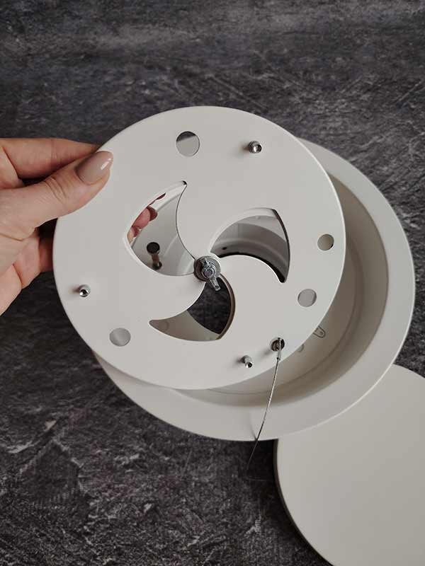 Конструкция диффузора включает съемную лицевую панель на магнитном креплении со страховочным тросом, что обеспечивает удобство обслуживания и надежность эксплуатации. Стандартное покрытие - полиэфирная порошковая эмаль RAL 9016 M (белый матовый), специально подобранная под цвет матовых натяжных потолков.