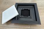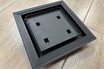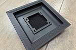 Изделие может быть изготовлено по индивидуальным размерам с шагом 1 мм. Минимальные рекомендуемые габариты – 150х150 мм, максимальные – 1000х300 мм. Габаритные размеры представленной модели составляют 195х195 мм, вес – 0.3 кг. Материал рамы и панели – алюминий и сталь соответственно, с возможностью покрытия в различные цвета.