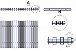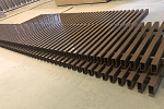 Решетка изготовлена из алюминиевого профиля сечением 10х20 мм. Ламели, выполненные из того же материала, надежно зафиксированы между собой. Для соединения ламелей используется стальная шпилька, которая скрыта декоративной алюминиевой трубкой диаметром 8 мм. Такая конструкция гарантирует долговечность и устойчивость к механическим нагрузкам.