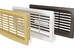 Конструкция решетки представляет собой комплект из двух отдельных элементов, которые монтируются с обеих сторон двери или перегородки. Наличие наклонных жалюзи обеспечивает направленный поток воздуха и предотвращает попадание пыли и посторонних предметов внутрь. Данная модель также подходит для установки в подоконники с целью эффективного распределения теплого воздуха от систем центрального отопления.