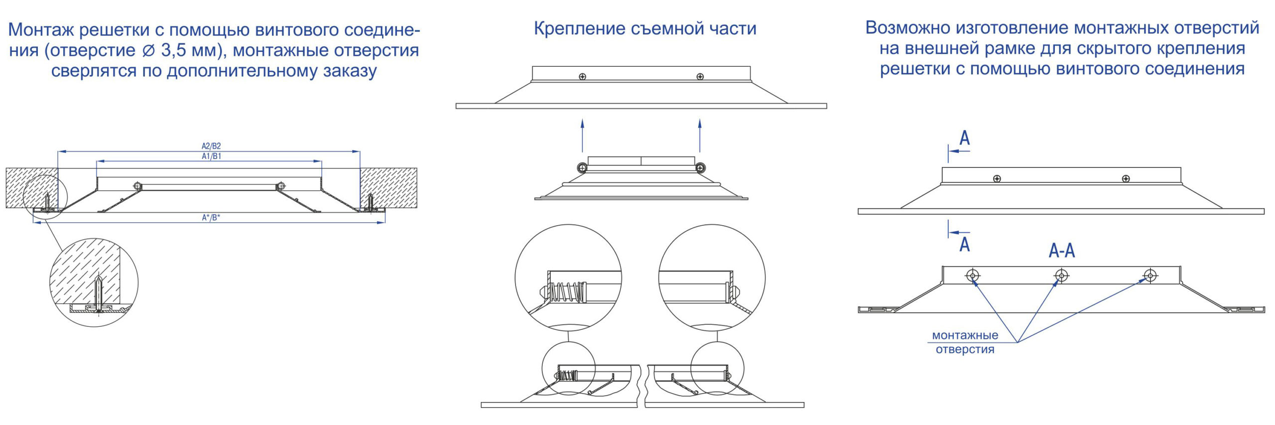 Решетки обеспечивают эффективное распределение воздушных потоков, сохраняя эстетичный внешний вид помещения. Легкость демонтажа внутренней секции позволяет оперативно получить доступ к воздуховоду для проведения регламентных работ или очистки.