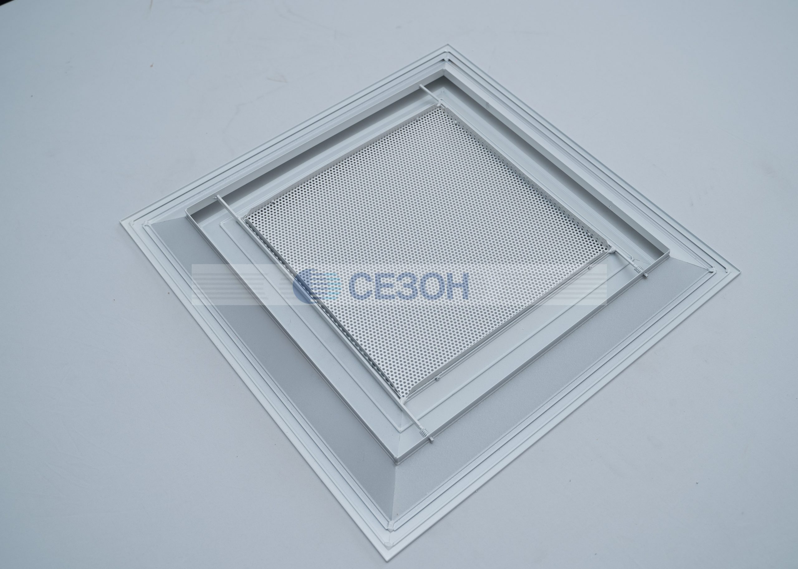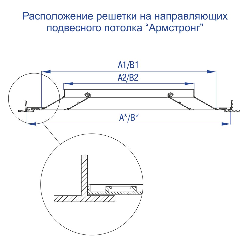 Представляем вентиляционные решетки потолочного типа, предназначенные для интеграции в системы кондиционирования воздуха и приточно-вытяжной вентиляции. Данная модель разработана для непосредственного монтажа в подвесные потолочные конструкции, такие как система "Армстронг". Конструкция решетки состоит из двух основных рам. Внутренняя часть, оснащенная перфорированной вставкой, является съемной, что значительно упрощает процессы монтажа и последующего обслуживания.